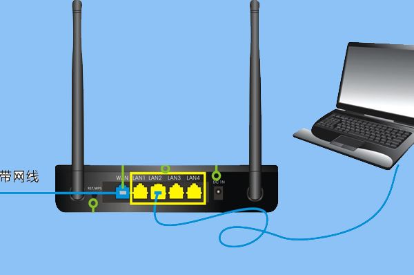 2、然后使用网线将路由器的WAN口连接在宽带设备上,LAN口连接在电脑上。