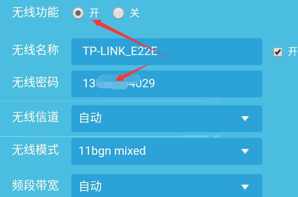 7、在出现的无线设置界面中勾选开启无线功能,并输入需要的无线信号名称以及密码点击保存。