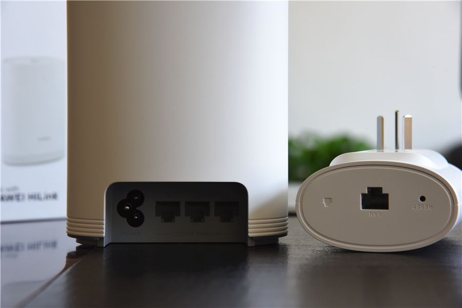 Q2 Pro母路由器的底部有一排散热孔、电源插座、三个10/100/1000Mbps WAN/LAN自适应以太网端口。子路由器的正面只有华为的标识和指示灯,背面是一个三角插头和底部的10/100/1000Mbps LAN以太网端口。在硬件上,引入的PLC Turbo创新技术能够快速的实现子母路由之间的组网,性能能够提升50%——120%。正常情况下,2.4G的组网速度一般在40、50Mbps左右,而5G WiFi组网的速率在130Mbps左右,无线传输时还会受到环境影响而出现延迟和波动,而华为路由Q2 Pro以电力线代替网线为中继传输,可以无损地进行200Mbps的数据传输,速率可以说是天壤之别。