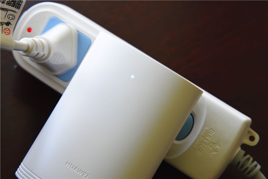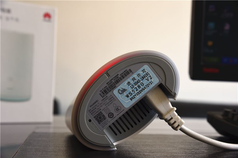 Q2 Pro的母路由器带有一个HiLink按键,对于华为手机的用户而言,不需要每次输入密码去连接,直接按下按键就能在局域网内无间隙的联网。在机身的底部有一圈灯光的设计,路由器处于不同的状态时,也会显示不同的灯光颜色。当路由器处于未连接网络时,就会闪红灯,可以正常工作时,会闪淡蓝偏青色的光。