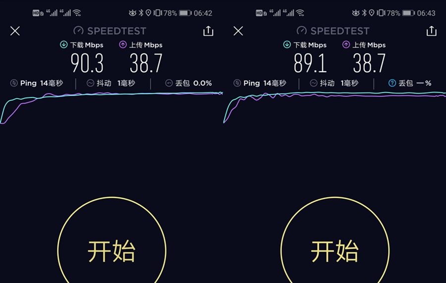 如果插上子路由器,就立刻能够实现“那里信号不好就插哪里”,让WiFi信号变得和A(书房)位置一样。在插上子路由器之后,又测试了D和E两个位置,下载速度分别达到90.3和89.1Mbps,上传速度为38.7和38.7Mbps,信号也由之前的2.4G变为5G,与A位置的信号强度几乎一样。除此之外,使用这款路由器除了信号明显提升,另一个明显感受就是D和E这两个信号最弱的地方,网络延迟也控制在15ms以内,因为网络延是会影响我们平时玩抢红包、玩手机网游(王者荣耀等)等的直接体验,在实际的使用中有明显的速度提升的感受。从Speedtest的测试结果来看是真正达到了千兆宽带的标准,还是非常不错的。