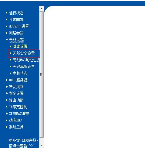 2、进入路由器的服务器,选择“无线设置”——“无线安全设置”。