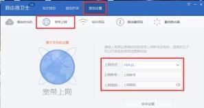 步骤3、接下来切换到【路由设置】选项卡,点击【宽带上网】选项,在此界面选择【上网方式】、【上网账号】和【上网密码】,点击【保存设置】按钮;然后点击【重启】按钮,重启一下路由器;