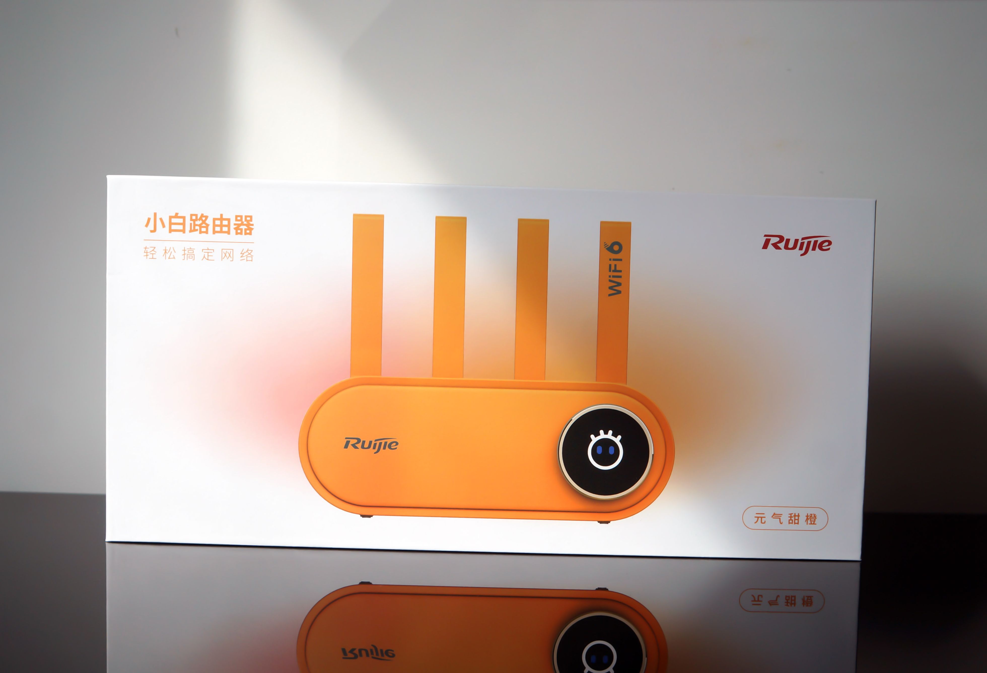 它有三个颜色版本,我入手的是暖橙色版本。从包装上讲,锐捷小白路由器是我见过的少有使用温暖色的,你还可以从包装上看到产品的渲染图、品牌等相关信息。