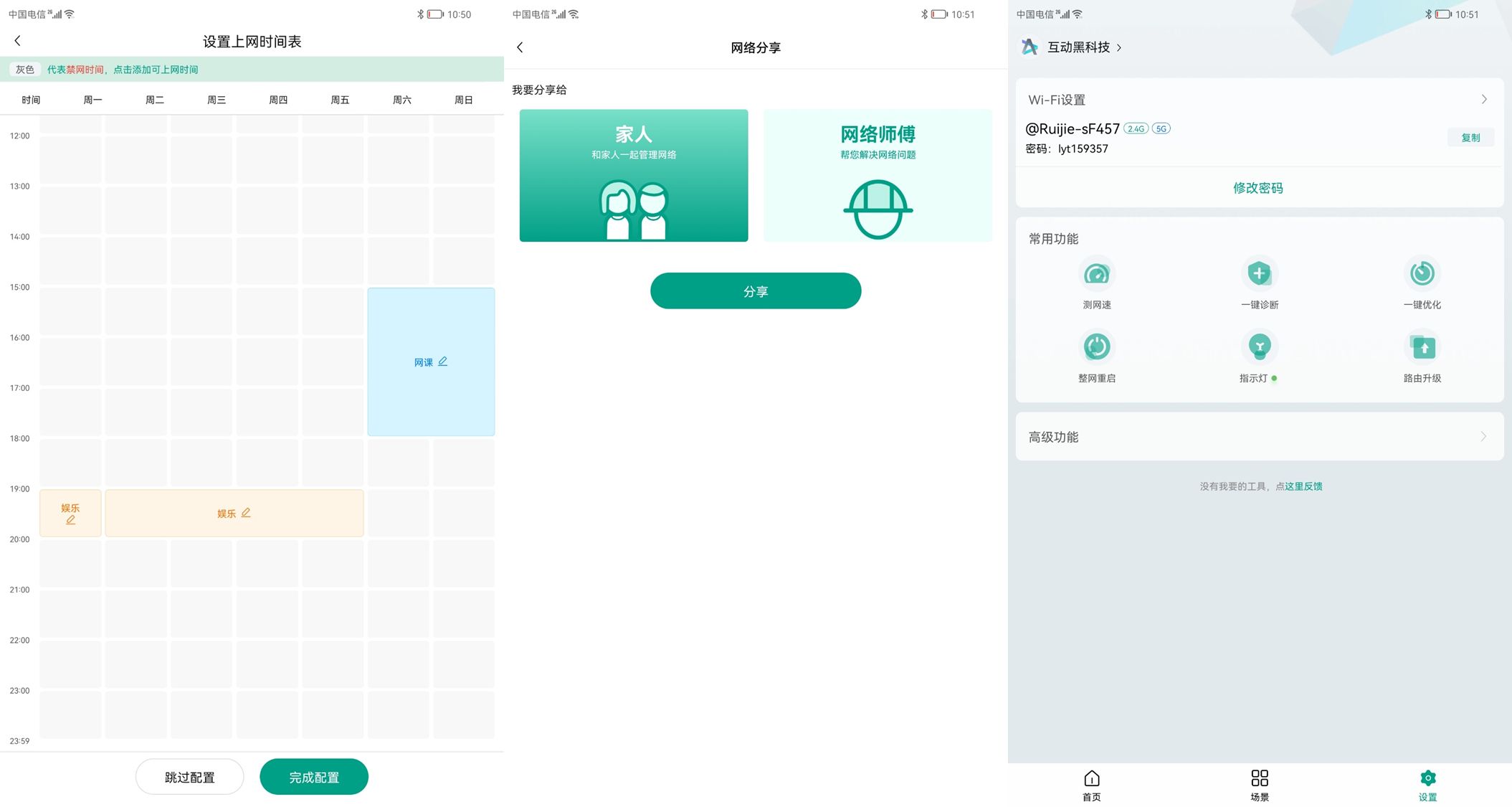 儿童上网管理,锐捷小白路由器做得更专业、更丰富一点。下载官方的锐捷星耀APP以后,就可以进行儿童上网管理方面的设置。