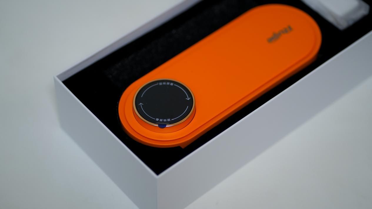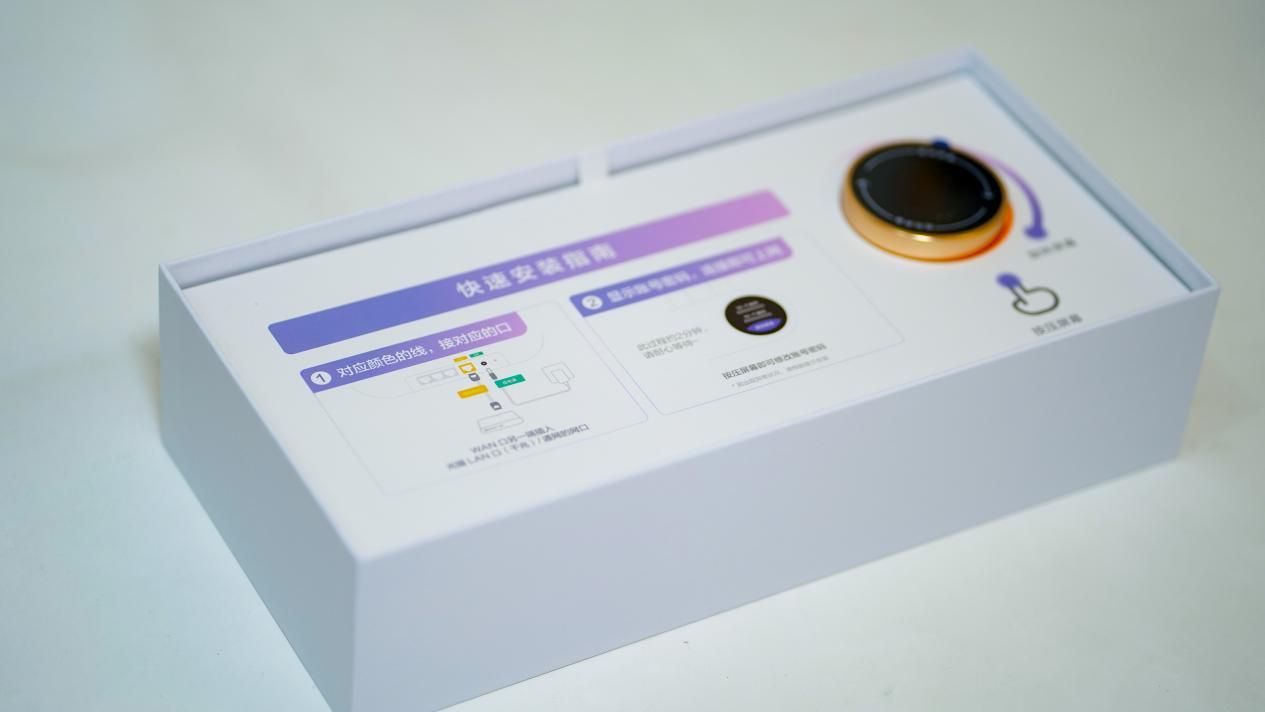 打开盒子,包装设计中突出了屏幕的设计,左边有简单的指南介绍,右边圆形的屏幕有点像古典相机的镜头,还是有点设计感的。