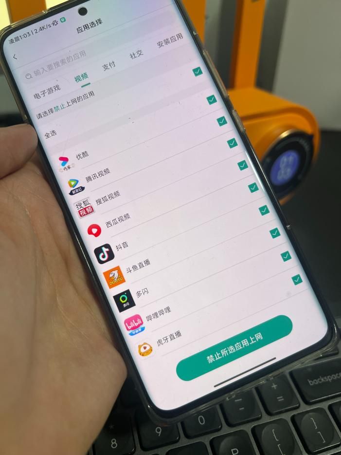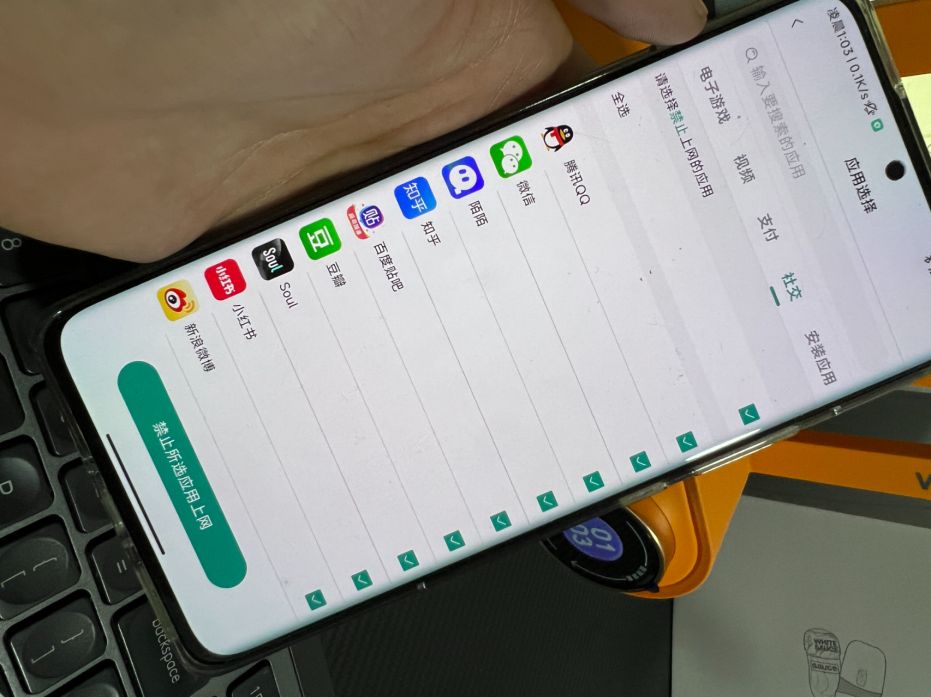 还可以设置每一款APP的联网情况,例如在游戏栏目里有主流的游戏APP可以一键关闭,还有视频类、支付类、社交类、安装应用。还可以对特定的网址进行拦截。