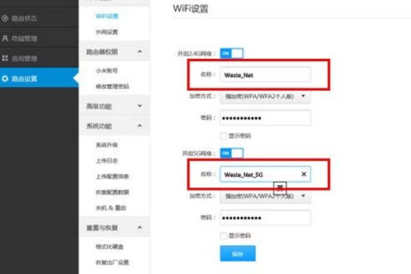 信号强度推荐设置为穿墙(最强),5G和2.4G的WIFI设置一模一样,就不再赘述了。