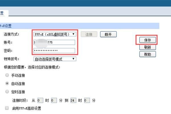 1.2路由器设置拨号连接(PPPOE),输入账号,密码;再设置无线名称,密码保存即可。