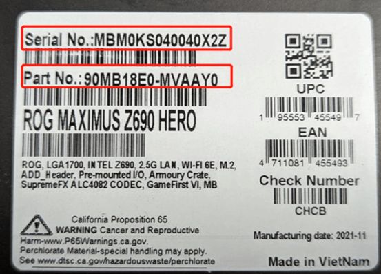 笔者了解到,该问题可能会影响所有序列号为90MB18E0-MVAAY0且序列号以MA、MB或MC开头的华硕ROG Maximus Z690 HERO主板。要注意的是,这些主板均是2021年制造,并且包装盒上提供了主板标签。如果不知道批号,需要检查上图中圈出的电容器(位于DIMM插槽和Q-Code读取器之间)。如果发现“150”数字是倒转的,笔者建议最好停止使用主板并联系华硕客服及时更换,以防造成主板部件损坏。