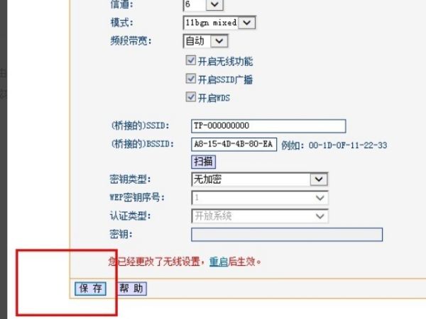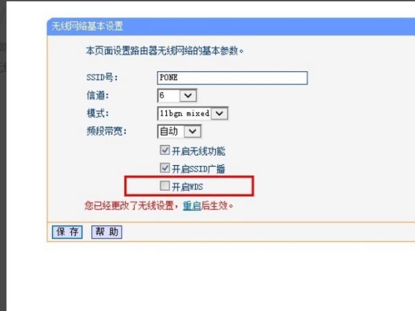 5、接下来,路由器自动返回到无线设置界面,我们已经可以看到桥接的无线路由器的SSID名称,就是与我们的路由器桥接的那个无线路由器。
