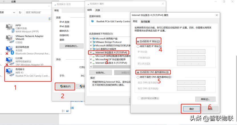 (1) 工业路由器插好4G卡,安装好网络天线;然后将工业路由器的Lan口连接到电脑网口,同时电脑网络共享中心的本地连接设置自动获取;