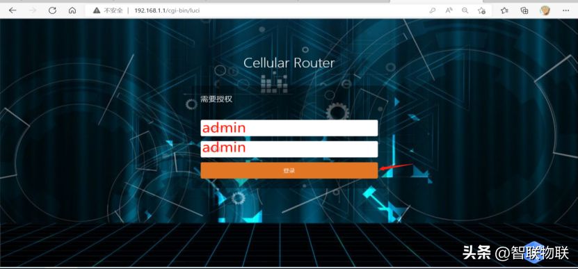 (2) 打开浏览器,输入:192.168.1.1(默认地址,如有修改,请先查看电脑本地连接处的实际网关ip地址),回车,输入默认的登录用户名、密码:admin/admin,点击“登录”,最后进入到工业路由器的配置管理页面。