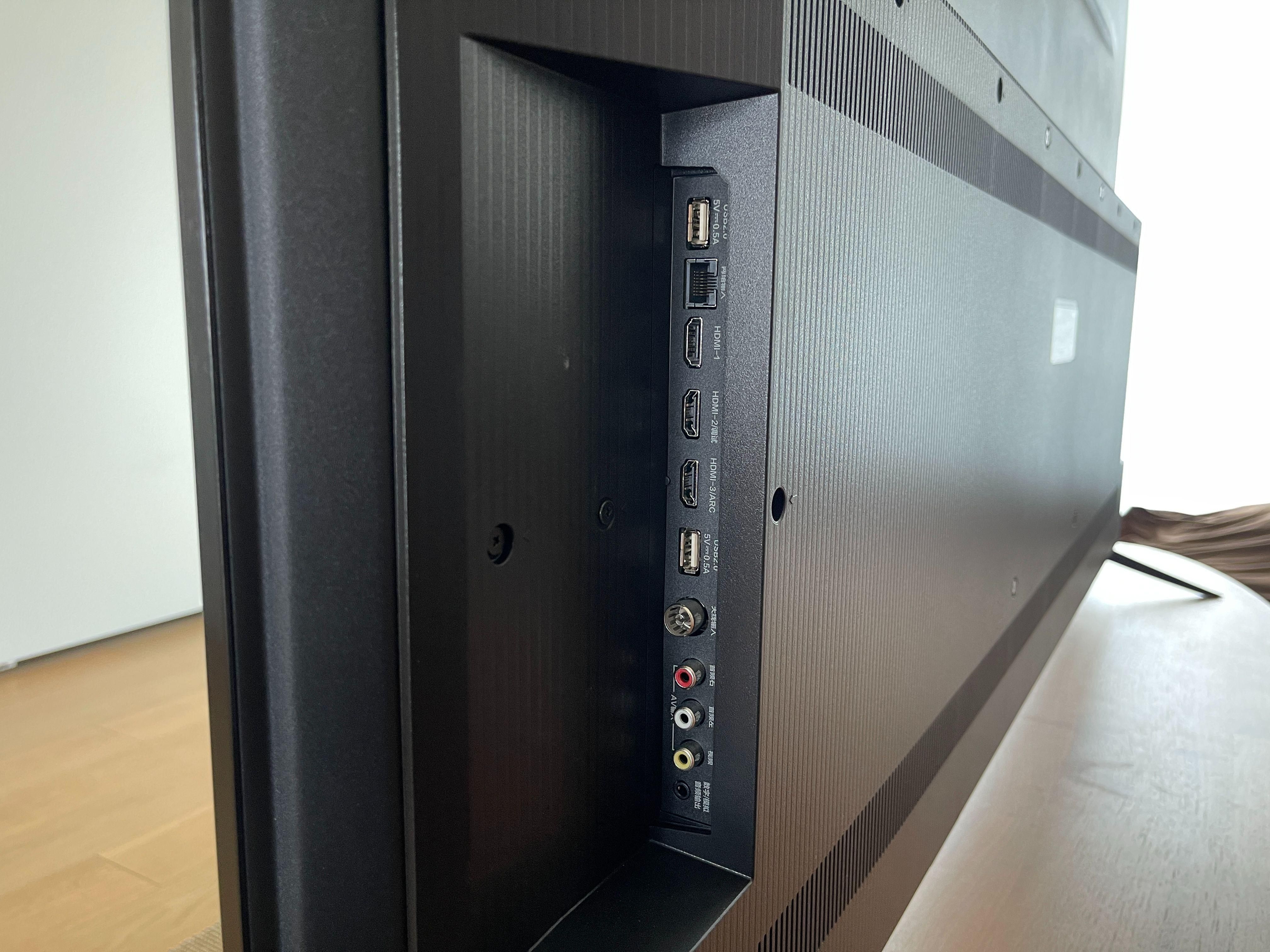 电源则是在背面的另外一侧;值得一提的是机器里也塞了两颗扬声器,功率为8W,有Dolby Vision Atmos的加持,有着不错的音效表现,能符合大部分人的使用需求,另外75寸则是两颗15W扬声器。