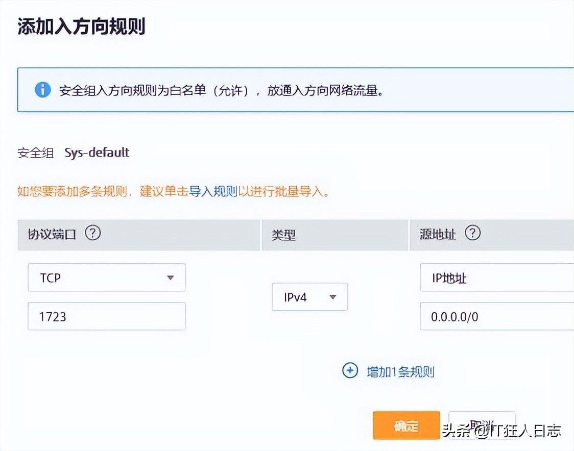 5、云主机需要在管理后台放行1723端口,不然无法远程拨入;