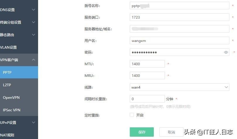 1、爱快路由器的配置还是很简单的,拨号名称必须是PPTP开头,后面自定义;