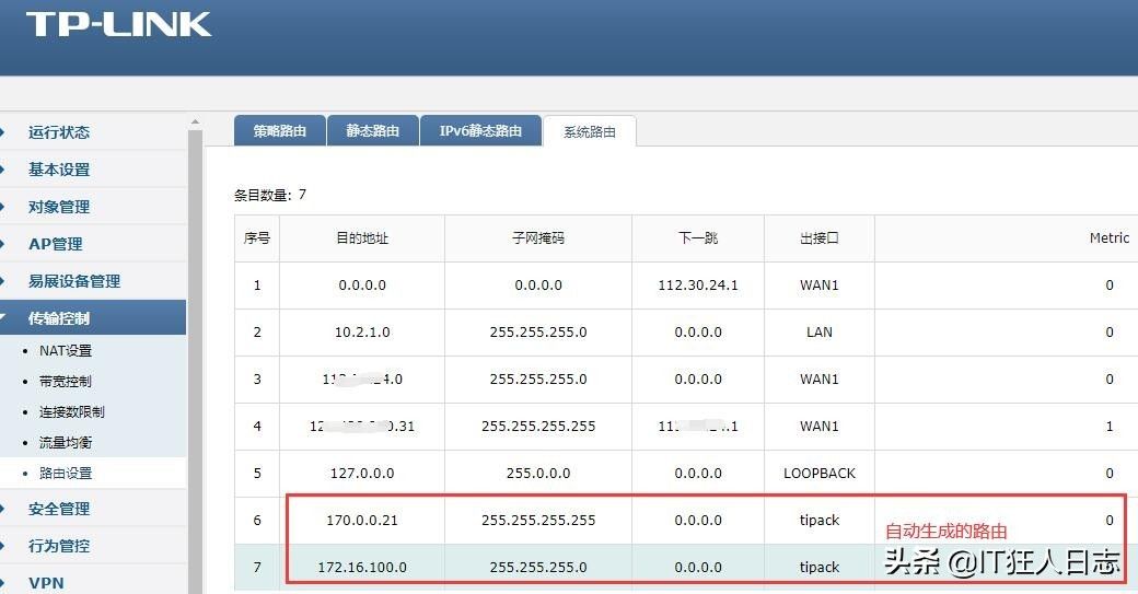 果断删除手写的静态路由,然后查看当前路由表,发现这款路由器竟然自动生成了路由表项,可能是担心我不会写吧。