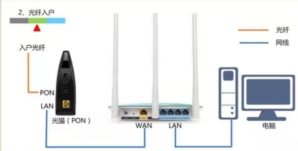 1、首先,需要把电信光猫、无线路由器、电脑用网线连接起来,正确的连接方式: