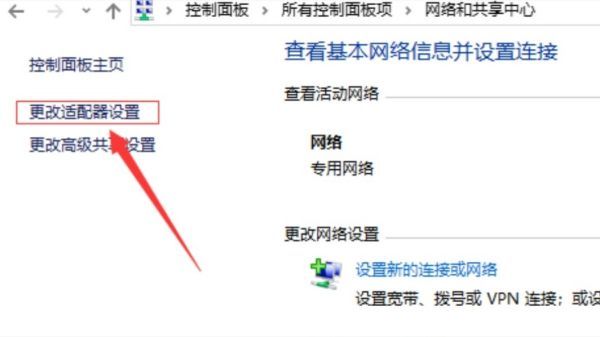 (3)选择更改适配器设置。