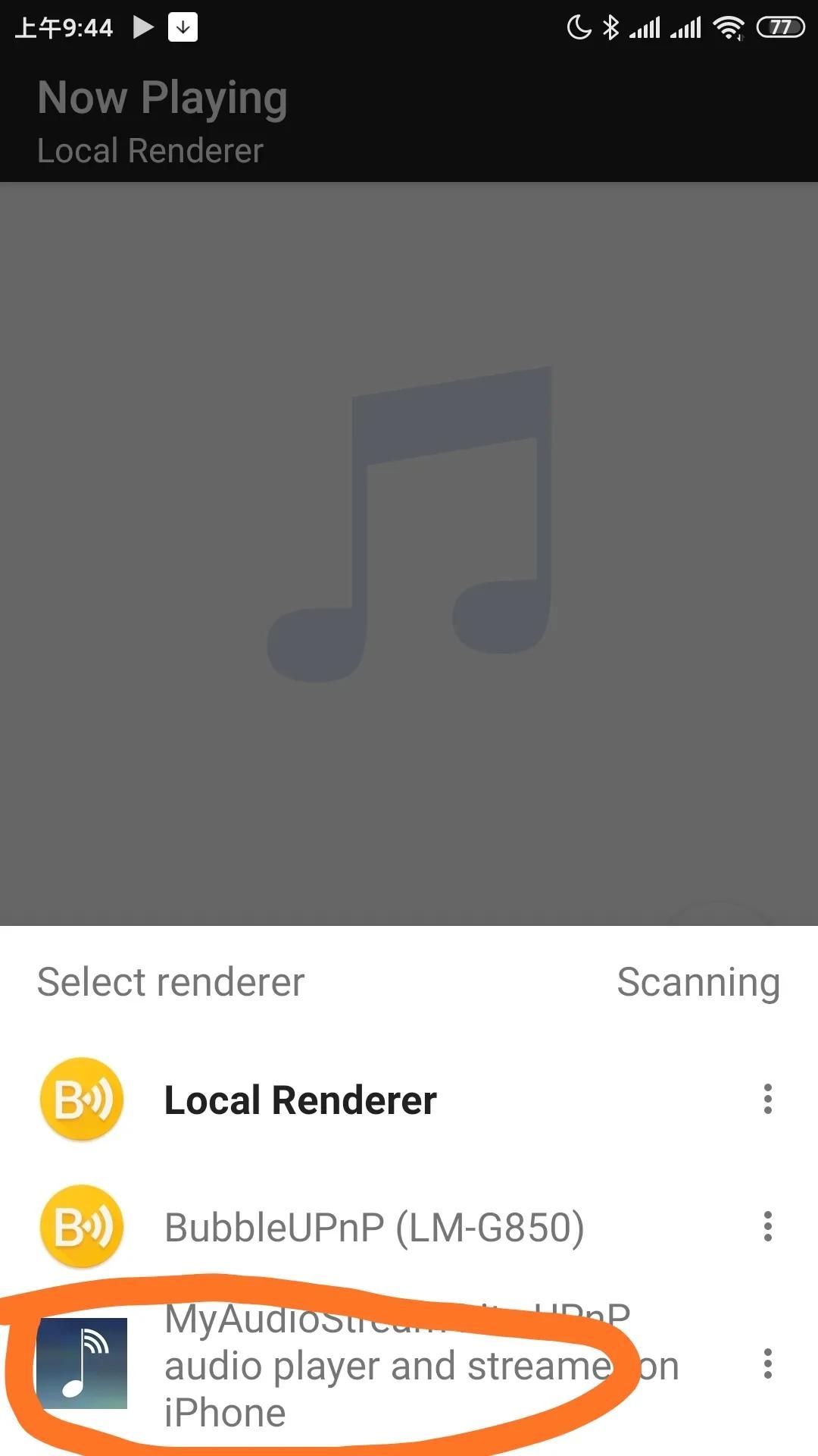 在你的另一部手机上(我的是安卓)安装bubbleupnp播放器,一个神奇的小东东,功能大的出乎想象。确保你的手机和苹果手机连接到同一个路由器,也就是处于同一个局域网之下。