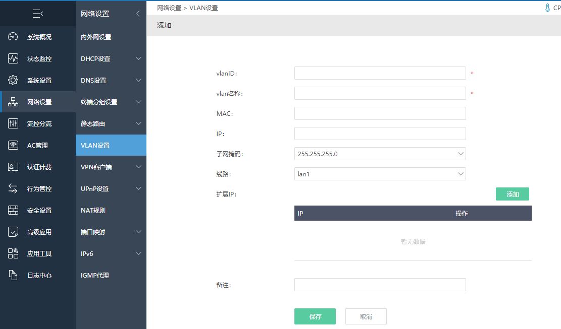 第一步:在网络设置--VLAN设置里面里面添加VLAN。