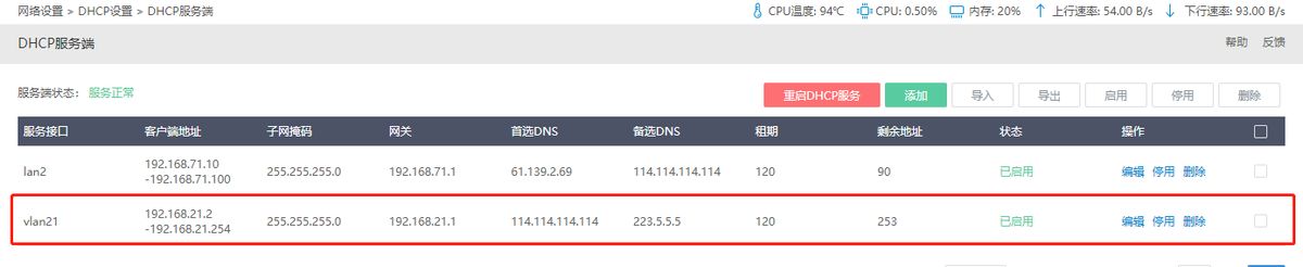 第二步:在网络设置--DHCP设置--DHCP服务端里面添加对应VLAN的dhcp地址池。