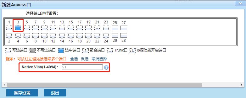 设置完trunk后,设置access口,把客户机接交换机接口设置成access口,native VLAN填写设置的VLAN。