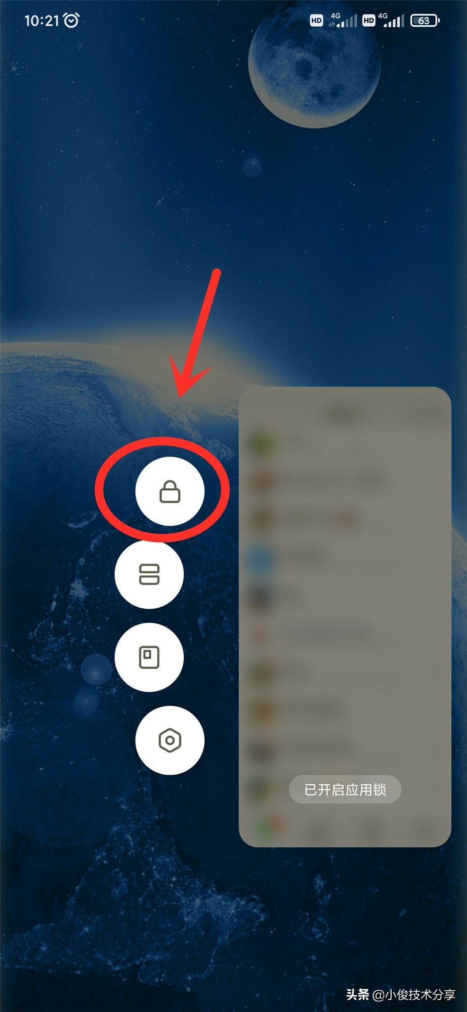 此时我们只需将它锁定即可,我们手指往上滑动,然后长按【微信】,接着点击【小锁】图标把它锁定就可以了!