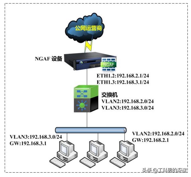 若内网划分了多个VLAN区域,部署防火墙设备,通过防火墙做VLAN间路由和内网VLAN 的网关。