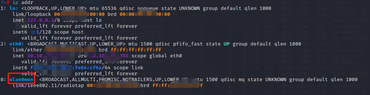 再来使用ip addr查看下,发现wlan0 已经变成了wlan0mon了