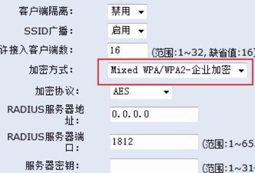7、设置SSID,将加密方式为“MixeWPA/WPA2-企业加密”,这个方式对于企业使用会更安全一些。