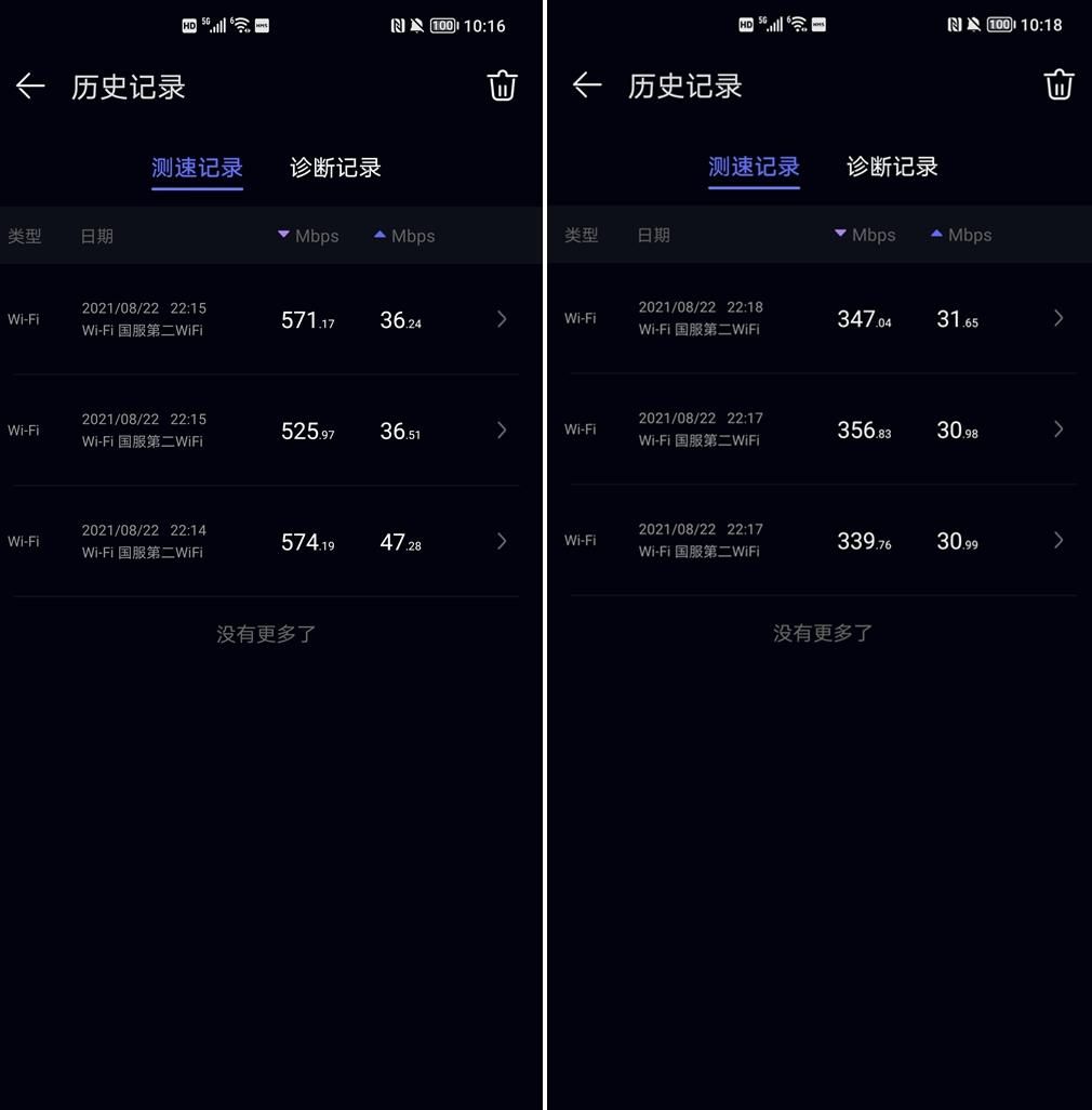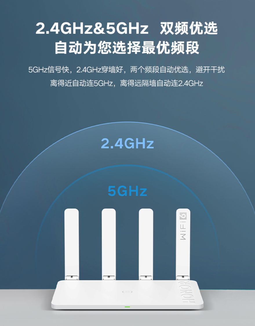 还有一个就是,之前赠送的路由器2.4GHz和5GHz频段是分开的,需要自己选择连接。2.4GHz网速慢但穿墙好,5GHz网速好,但距离和穿墙能力一般。而荣耀路由器3 SE是自动识别的,当你远离时就选择更稳定的2.4GHz信号,距离近时就连接5GHz,非常人性化,也体验出大厂技术还是强很多。