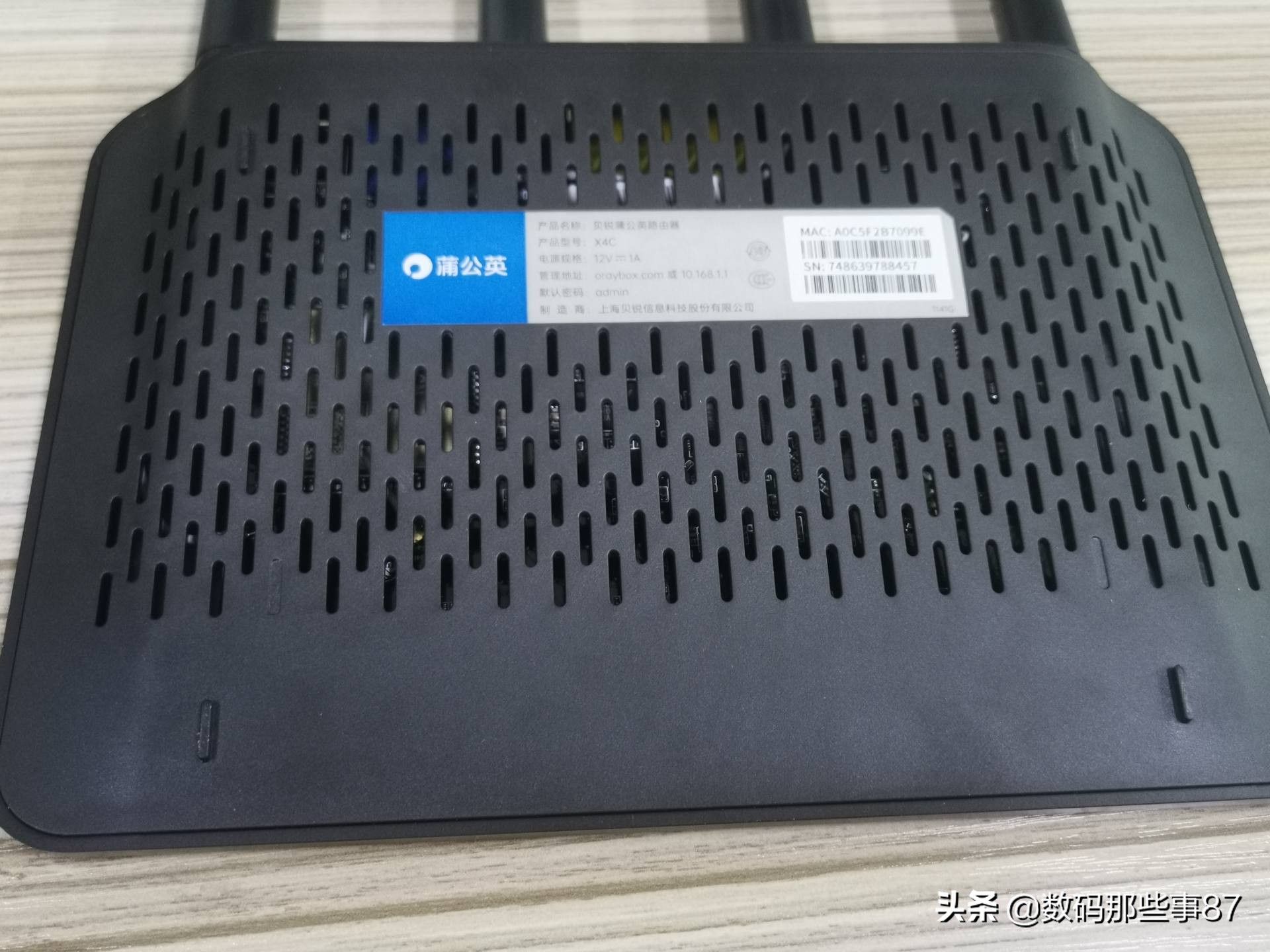 蒲公英X4C路由器包装盒可以说是我迄今为止,见到的设计最简单的包装盒,黑色的盒子顶部印有蒲公英的Logo,四个侧面分别印有产品的名称和产品的一些基本信息。