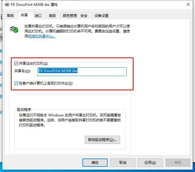 1.打开打印机属性,点击共享,选择共享这台打印机。