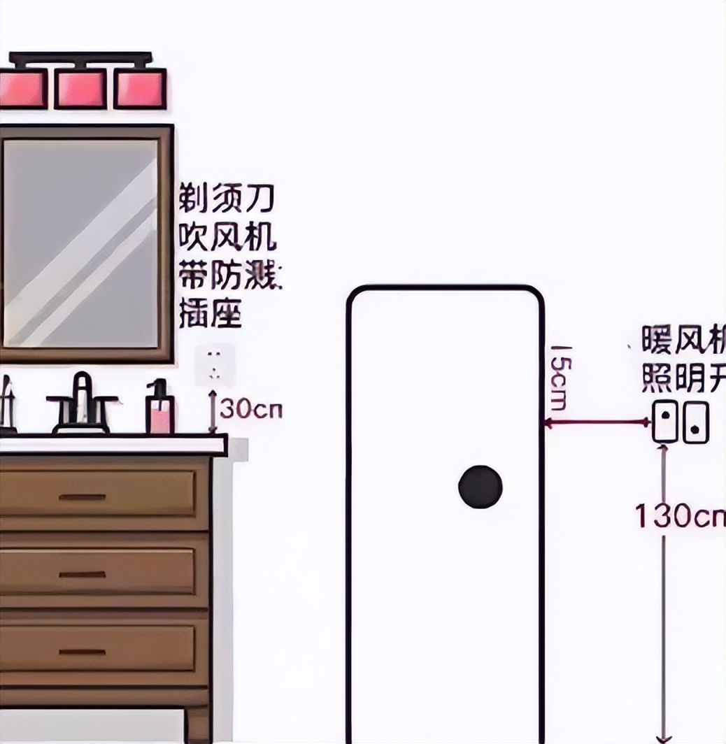 10,剃须刀,吹风机插座1米3,卫生间浴霸开关1米3,。
