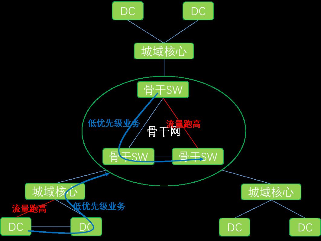 - 根据异常链路超出的流量和备份链路可承载流量计算出可调度流量范围;
