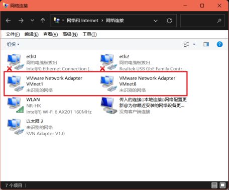 安装好VMware Workstations之后,会在网络设置中看到软件安装的两个虚拟网卡,在软件菜单栏“编辑-虚拟网络编辑器”中可以看到软件自带的三种网络连接模式VMnet0、VMnet1和VMnet8,也称为桥接模式、仅主机模式和NAT模式。