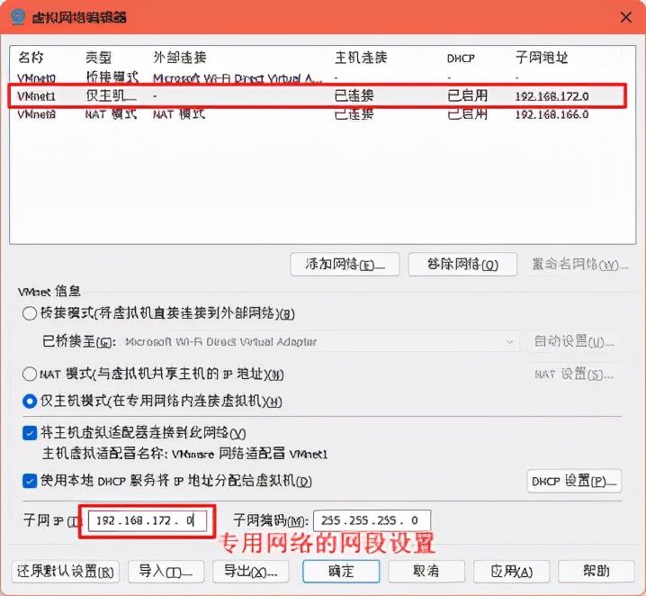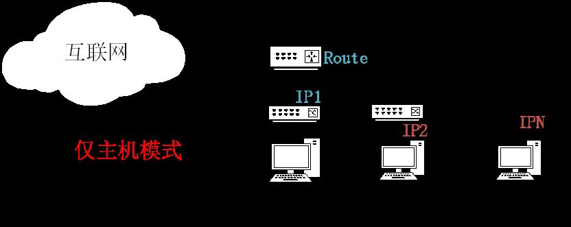 仅主机模式,相当于虚拟机之间利用虚拟网卡VMnet1独立建立了一个专用的二层局域网,该专用网络与主机所在网络相互隔离,无法联通。该模式适用于我们想搭建一个不受干扰的局域网的情况。