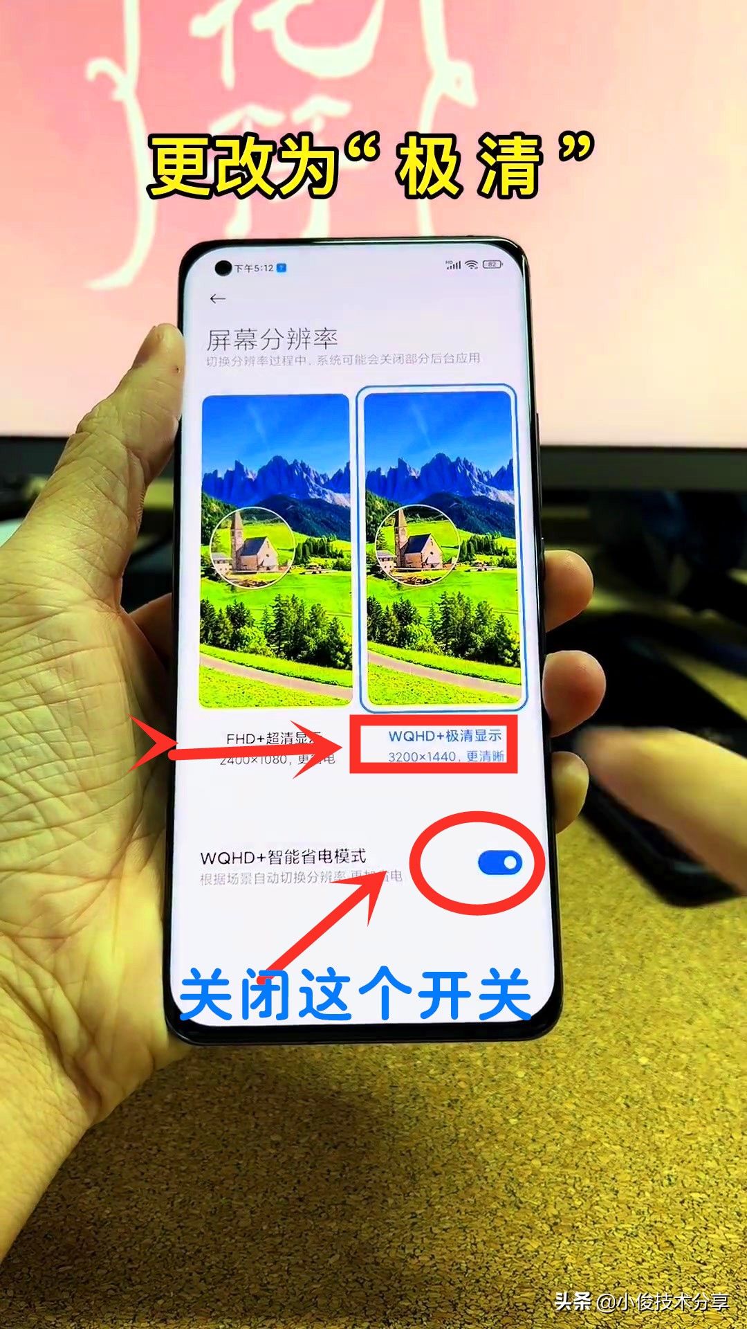接着选择为【WQHD+极清显示】,以及把下方的【省电模式】开关关掉!