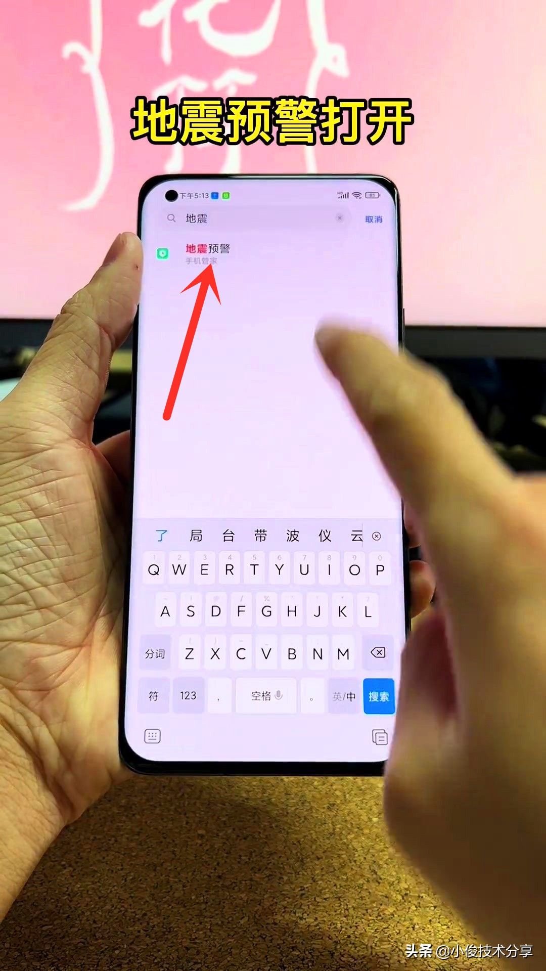 打开设置,在搜索栏输入【地震】,然后选择第一个【地震预警】