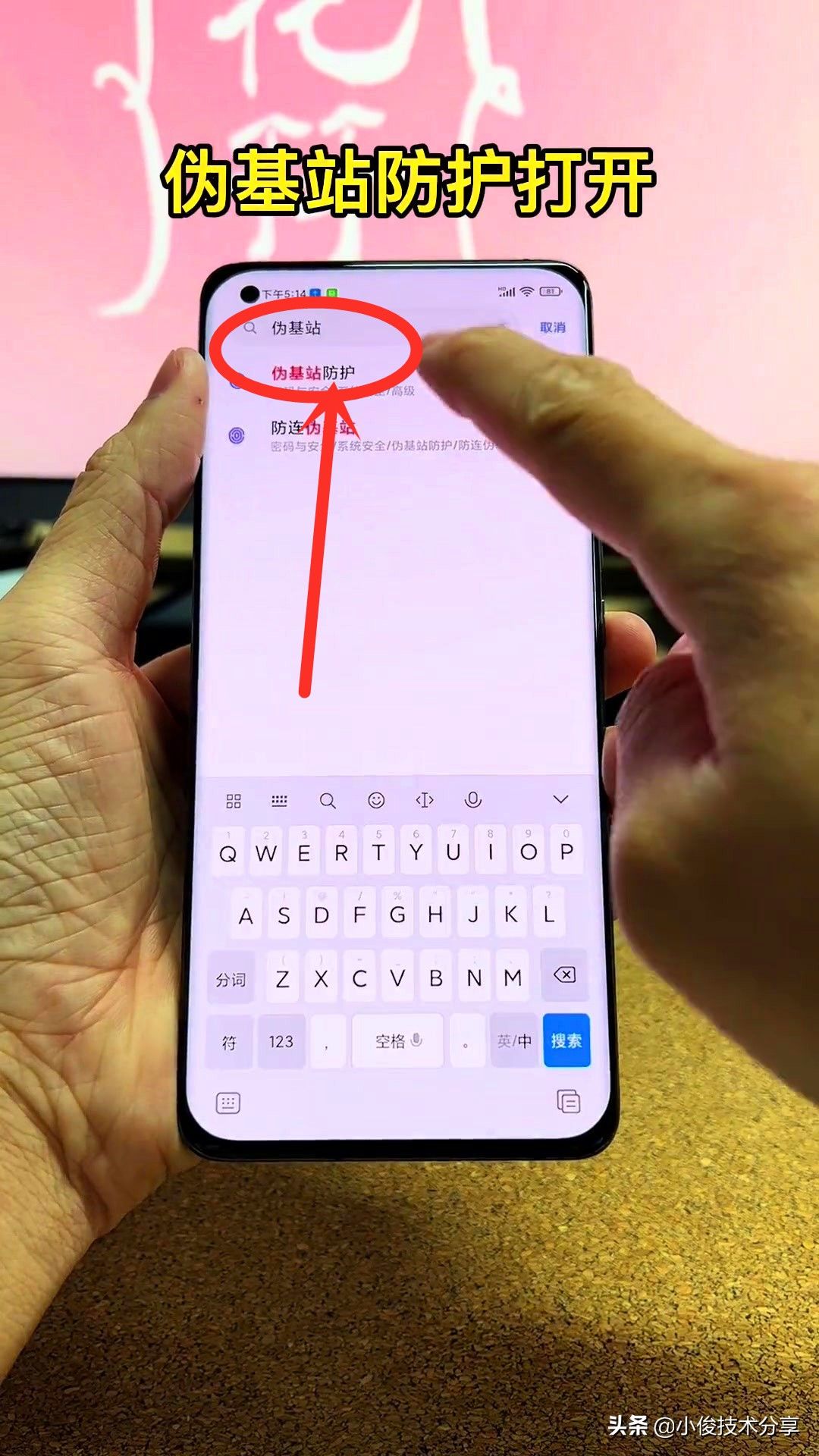 相同的方法,在搜索栏输入【伪基站】,选择第一个【伪基站防护】