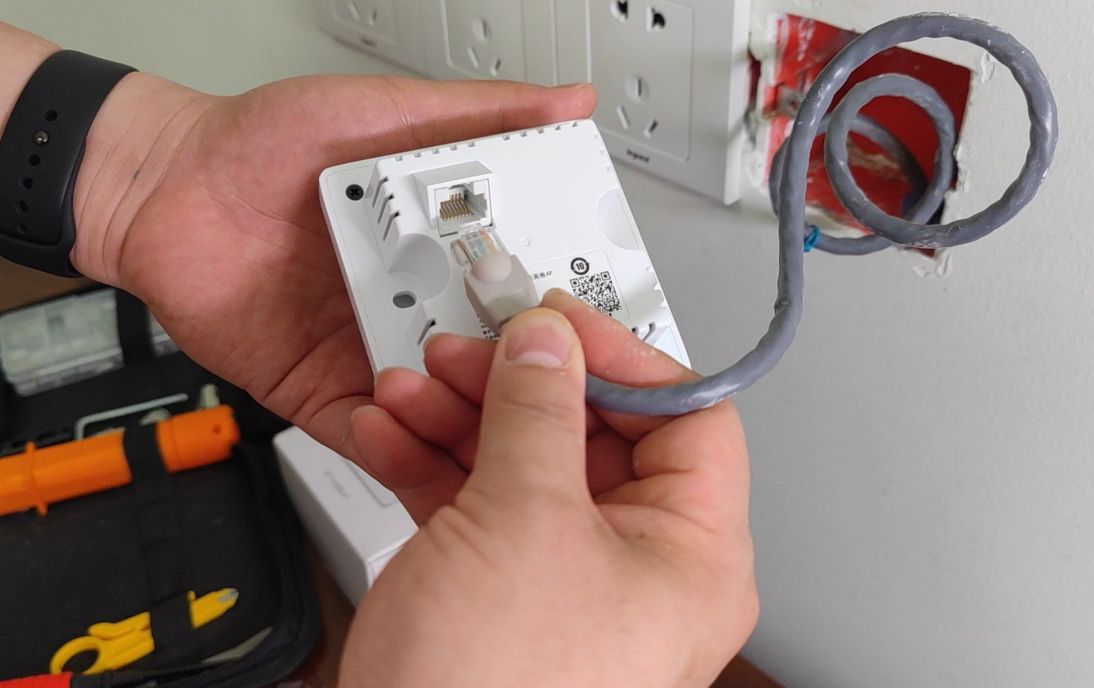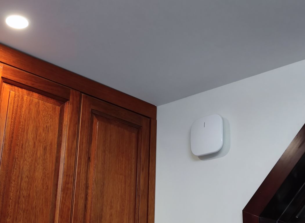 我们选择在餐桌垂直墙壁上安装吸顶式AP,PPPoe供电方式没有供电线和适配器暴露在外面更加美观
