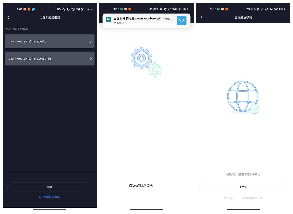 使用小米路由APP操作,按照提示进行连接,需要说明我的宽带是联通 500M带宽,无需拨号,直接连接上网。