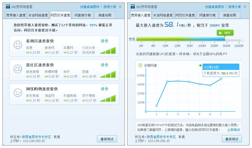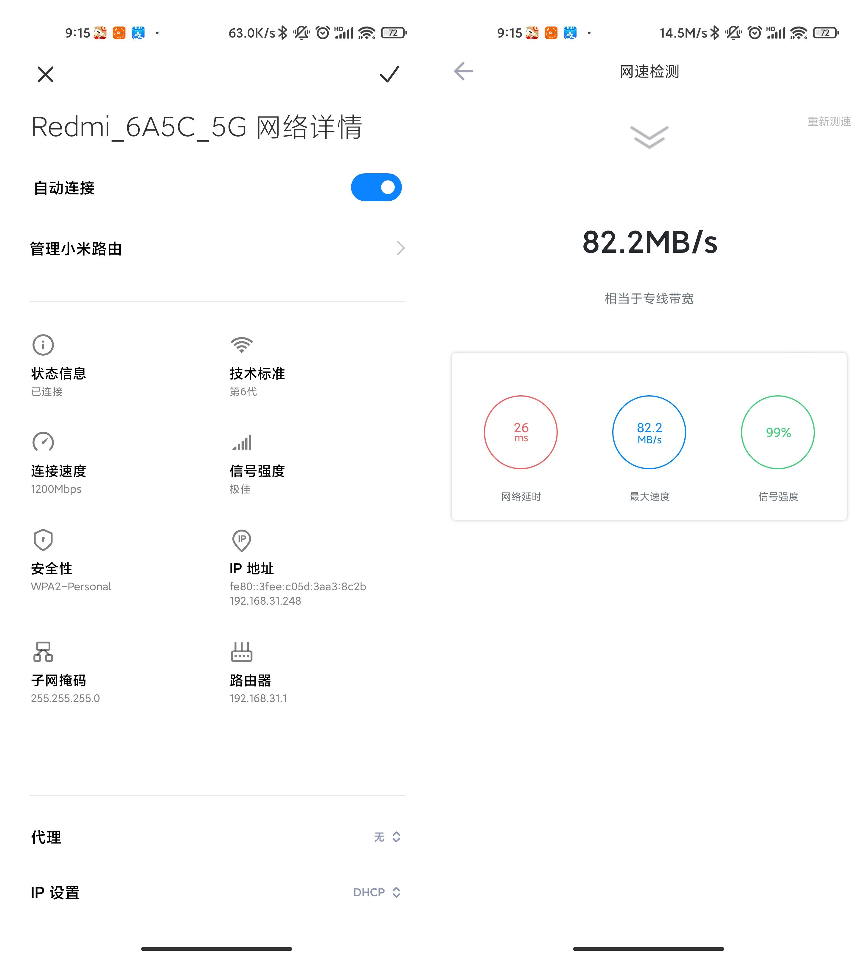 设置好路由后,第一步先进行测速是否可以跑满带宽,在测试网速这块,我使用的都是5GHz WiFi环境,理论最高支持1200Mbps,可以发挥最大带宽值。时间是早上9点多,测试软件为迅雷内置测速。