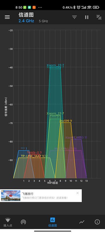 我将两款Mesh子路由放在书房同一位置进行信号测试在2.4GHz 这两款AX1800和AX3000基本没有什么区别(Xiaomi 23),然后我在使用有线连接到电脑进行测试