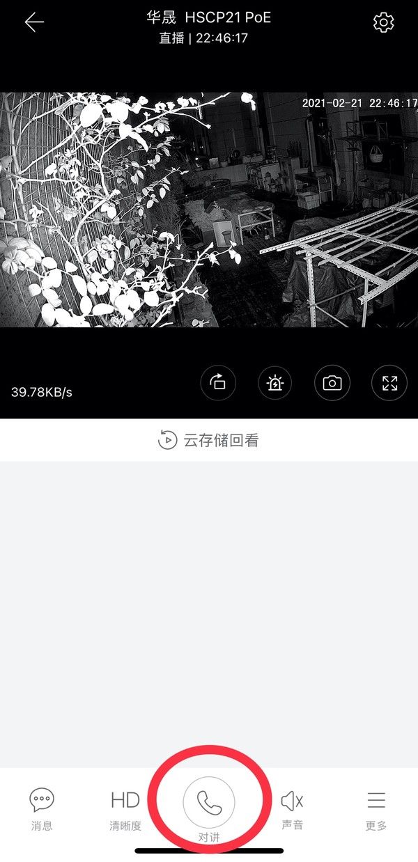 除了作为监控摄像头之外,华晟HSCP21还是一个远程语音视频通话的工具,通过手机APP上的对讲按钮,可以实现和监控所在位置的人的远程对讲。这个对于家里有老人小孩的用户特别友好,万一他们在家中发生什么意外,可以马上通过对讲闻讯情况。