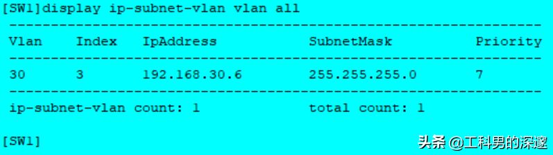 [SW1-vlan30]ip-subnet-vlan 3 ip 192.168.30.6 24