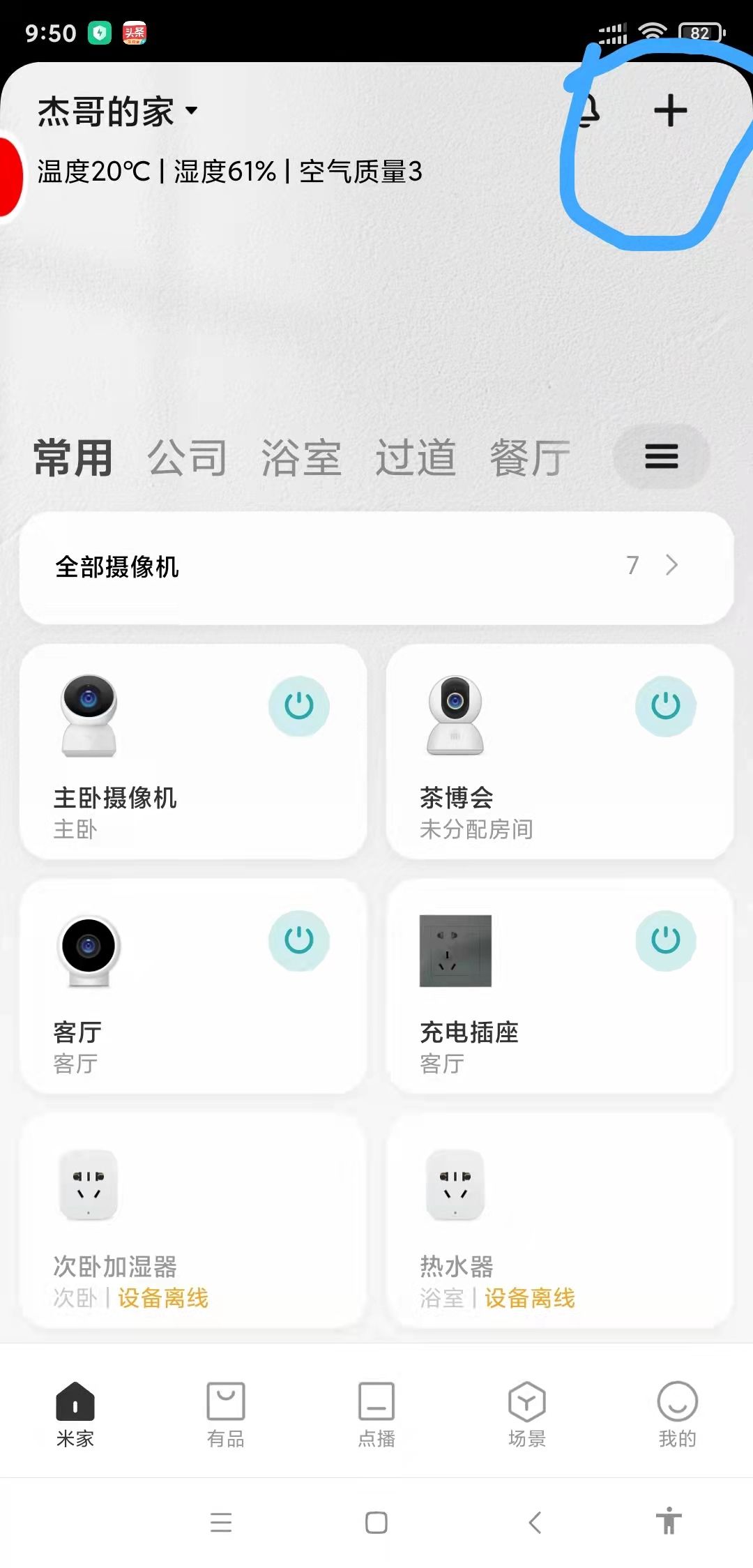 第六步,打开手机米家APP,点击主界面右上角+号添加WIFI通断器。