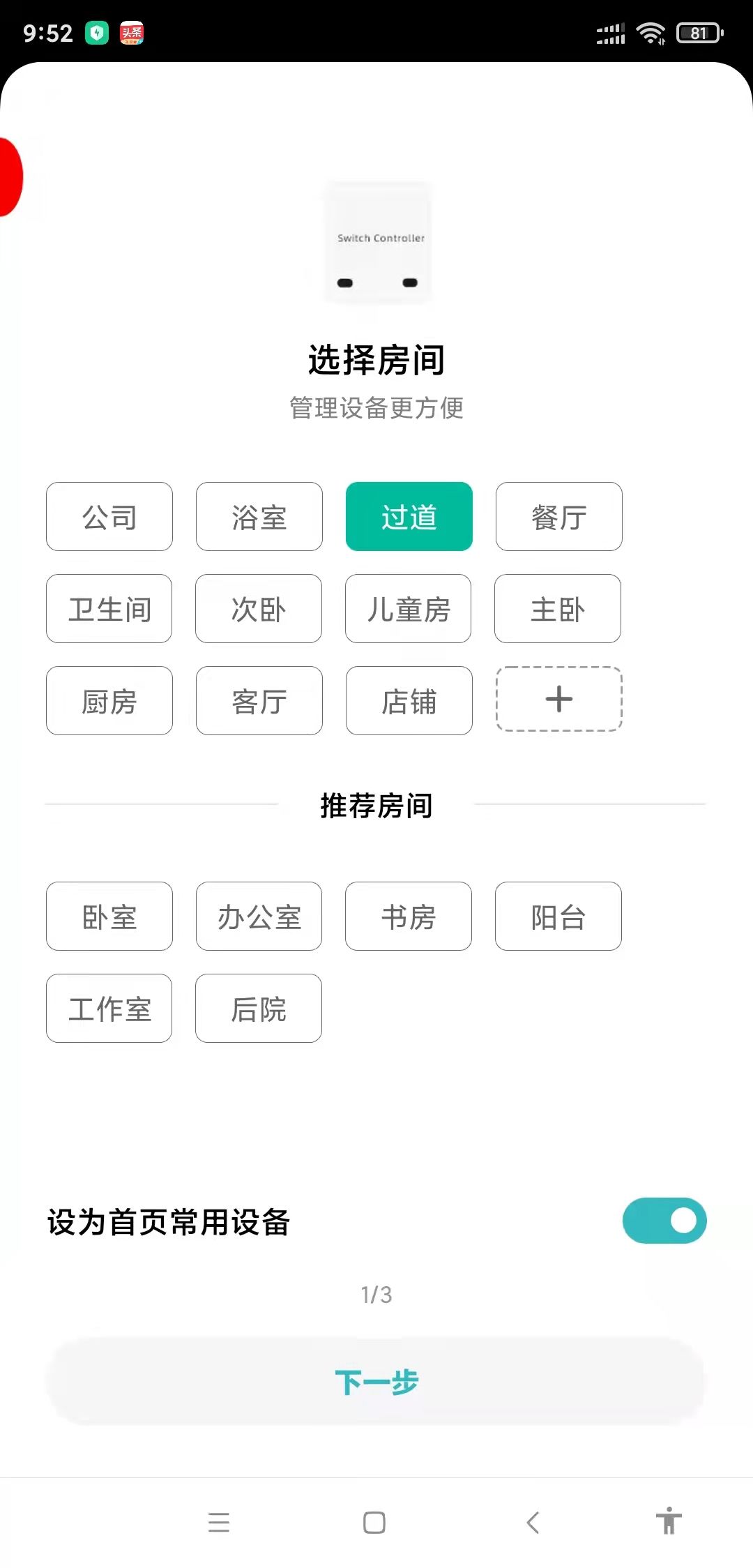 第九步,连接完成后,有主卧,浴室,客厅等等,还有一个+号,也可以自己创建所在位置名字,选择我们刚刚这个灯具的所在位置并点击下一步。