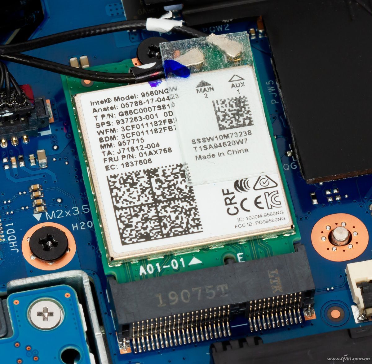 笔记本自然也需要天线,只是它的天线采用了内置的隐藏设计,一边使用IPEX接口与无线网卡相连,另一边则需要顺着主机内部的各种缝隙,通过屏幕转轴一直延伸到屏幕顶部边框的内层。